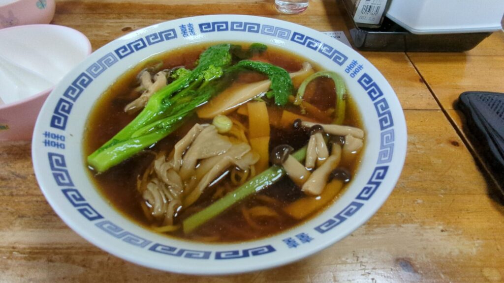 今回、私が注文したのは「山菜ラーメン(900円)」です。 山菜そばは定番ですが、ラーメンに山菜を合わせるスタイルは非常に珍しく、私の好奇心を刺激しました。