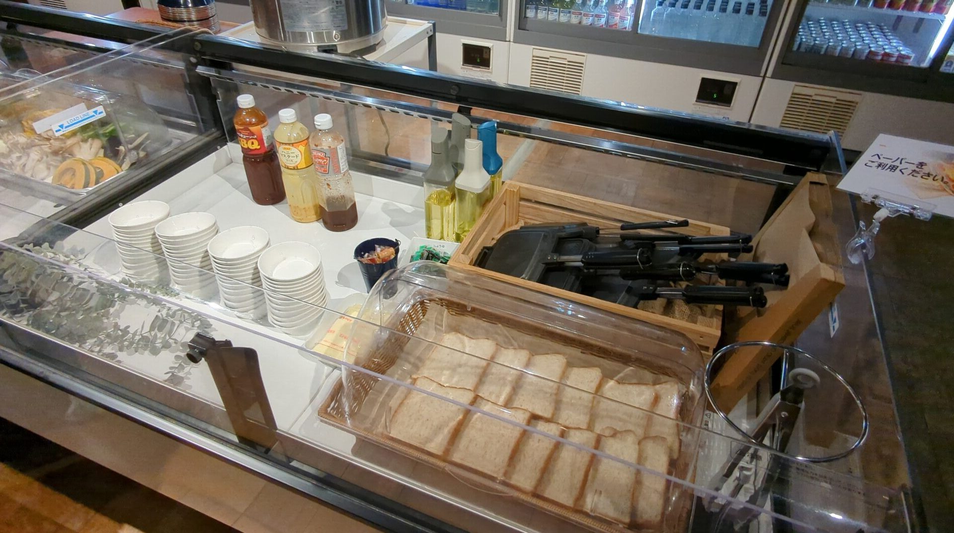 • サイドメニューの充実: 野菜やパンは食堂から自由に取りに行くスタイル。