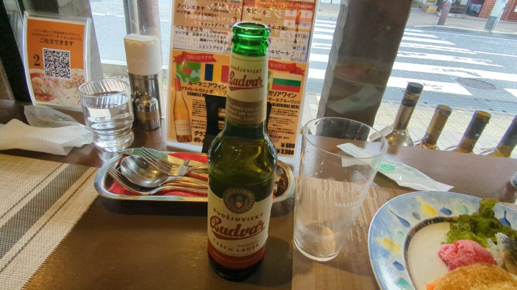 まずは喉を潤すために、チェコ産のビール「バドザー」を注文。