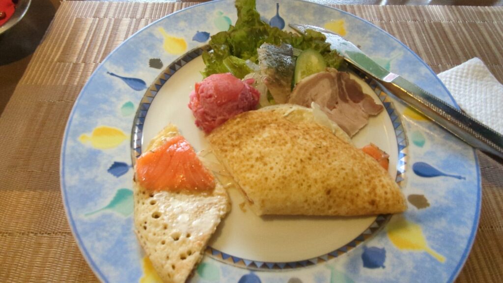 中のサーモンとパイ包が美味しい。