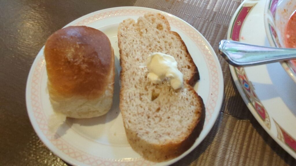 ヨーロッパの小説や映画『ライ麦畑でつかまえて』などで名前は有名ですが、実際に食べる小麦のパンとは違う、力強い風味と適度な酸味が、濃厚なボルシチと最高の相性を見せてくれます。