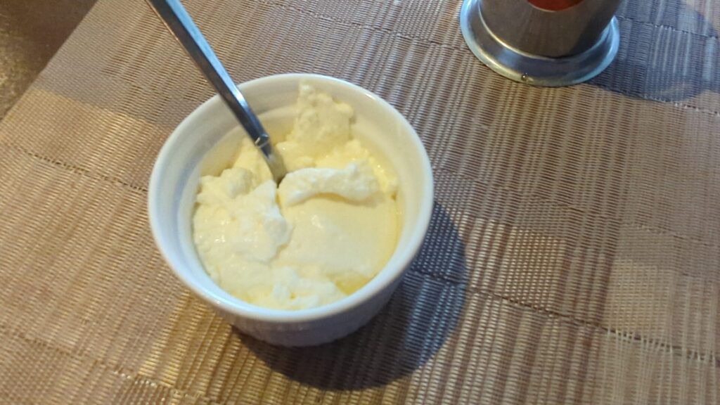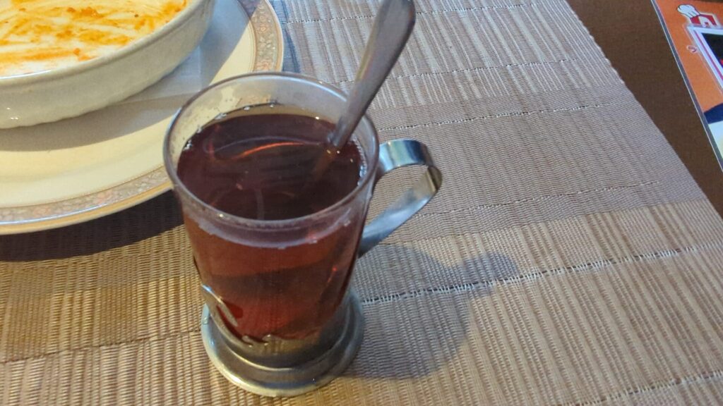 食後は、温かいロシアンティーと冷たいアイスクリームで一息。 ジャムの甘みが溶け込んだ紅茶を飲みながら、ゆったりとした時間が流れます。日々の喧騒を忘れ、美味しい料理に癒やされる。これこそが、大人夫婦の休日の醍醐味かもしれません。