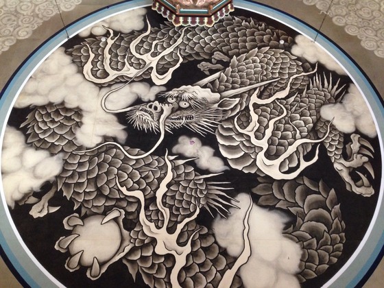 こちらも天井には白龍が描かれており、その威容に圧倒されました。