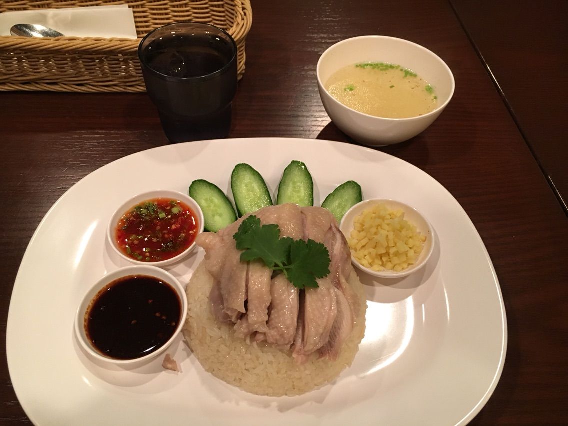 蒸し鶏を様々なソースにつけて食べる。ご飯もタイ米のようで、パサパサしているが、それが逆にソースにつけた蒸し鶏と一緒に口に含むと、ほぐれる感じで美味しいです。