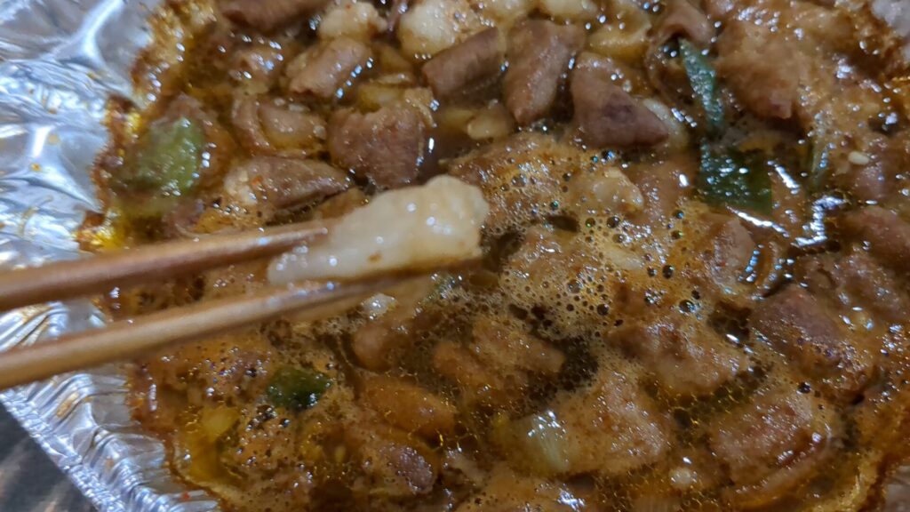 いよいよ実食です。 まず一口。驚いたのはその食感です。「プリプリ」としていて、噛むたびに脂の甘みが口の中に広がります,。 「400円台のコンビニ冷食で、ここまで本格的なホルモンが楽しめるのか」と、正直驚きを隠せませんでした。