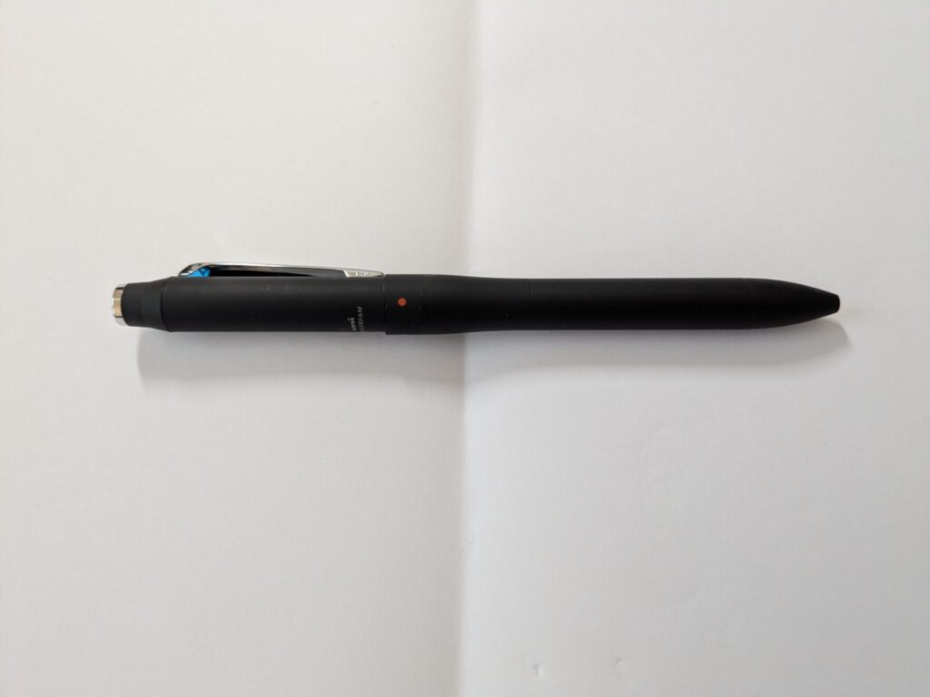 赤、青、黒の基本3色に加えてシャープペンシルもついており、基本的なペンとしての完成形だと感じています。書き心地はジェットストリームの基本をしっかりとおさえつつも、金属製のため、どっしりと書きやすい(でも重くない)という、絶妙な使いやすさを実現しています