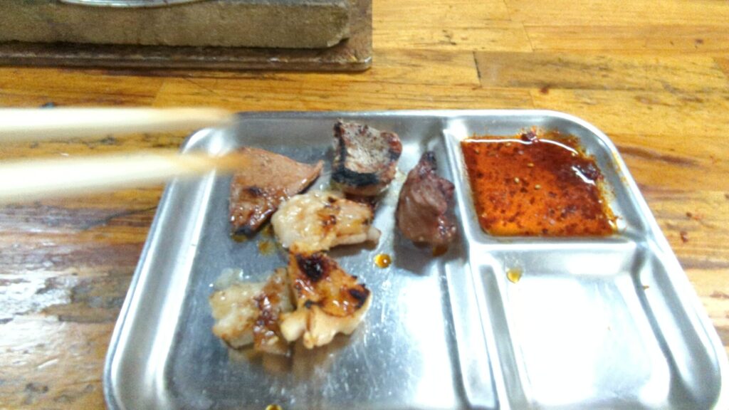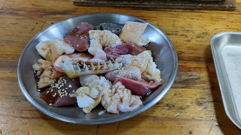 正直なところ、私の知識では正確な部位名は判別できませんでしたが、それでもこの旨さは疑いようがありません。シマチョウのようなぷりぷりしたもの、ギアラのような歯ごたえのあるものなど、様々な食感と風味が渾然一体となり、満足度は抜群です。焼いては食べ、食べては焼く、このループこそが至福の時です。