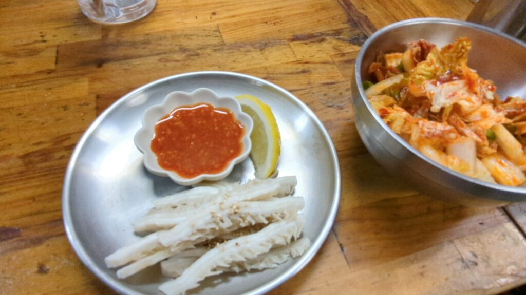 再びお口直しをしたくなり、今度は「ハチノス刺し」と「生キムチ(ミニ)」を注文しました。