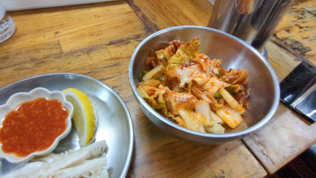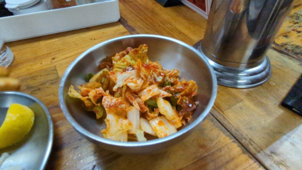 そして、特筆すべきは生キムチ(ミニ)(460円)です。白菜などの新鮮な野菜が使われているためか、触感が非常にシャリシャリとしていて、とても美味しいのです。一般的な発酵が進んだキムチというよりも、むしろサラダに近い感覚で楽しめる、箸休めにぴったりの一品でした。