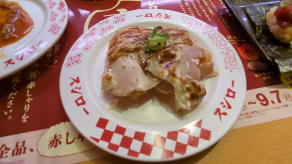 回転寿司でお肉を食べるのは、なんだか「罪悪感」が発生してしまいます。それでも食べたいのが、この豚ばらチャーシューチーズマヨ炙りです。