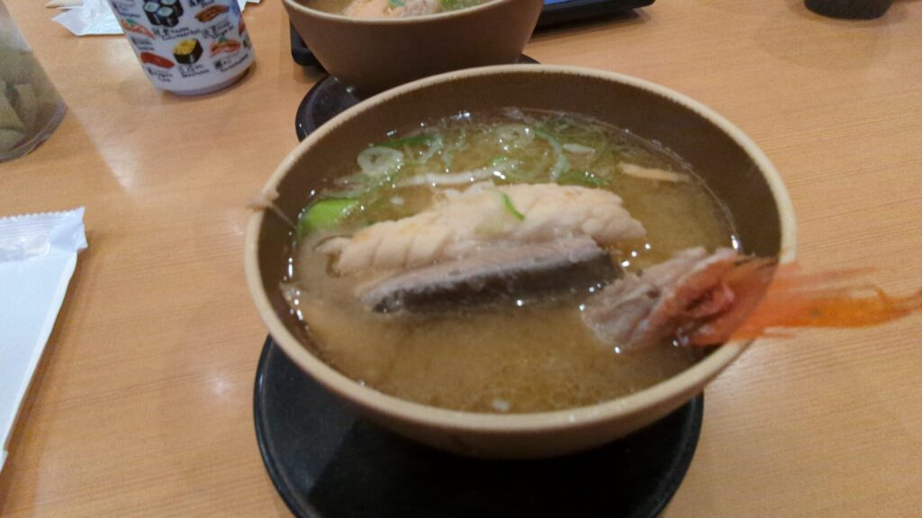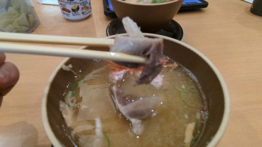 かなり肉厚な魚の切り身が入っている。骨もあるけど、しっかりしゃぶりついて食べました。美味しい。肉厚な魚の切り身が入っているあら汁ってすごい満足感あるんだよなぁ。