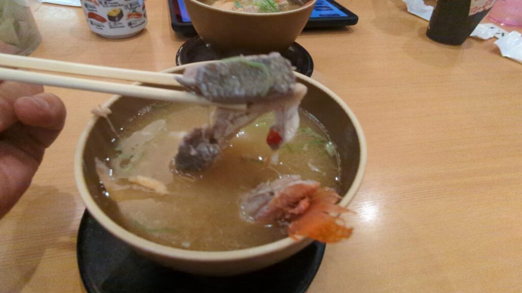 店内に入り、席に通されると、まずは冷えた体を温めるために「あら汁」を注文しました。