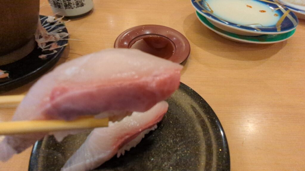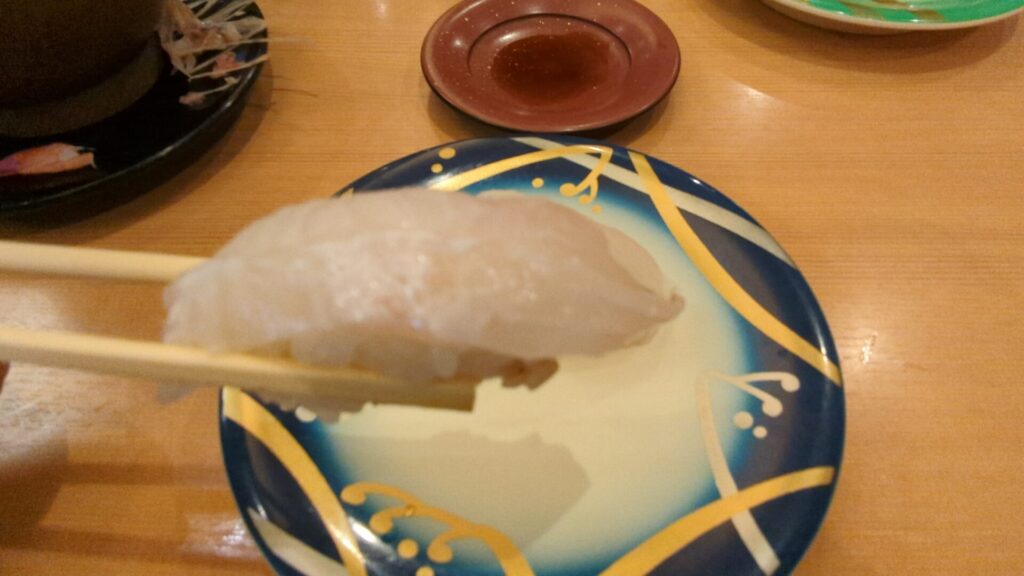次に注文した「鯛」も、期待を裏切らない厚み。プリップリとした程よい歯ごたえが新鮮さを物語っています。